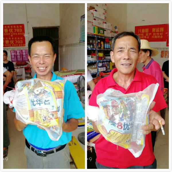 2015年區試,2016年續試,2017年國審,歷經三年試驗示范,隆8優華占得到了廣大農戶經銷商的高度認可。三年磨一劍、今朝露鋒芒,2018年的這個夏天八仙稻迎來了屬于它的時刻。 這個夏天最美的風景就是老百姓手握著著豐收的希望,臉上展露的笑容。在老百姓的心中八仙稻是這一季豐收的希望。 "我要6斤","我要9斤","我要20斤",門店里此起彼伏的聲音里是老百姓對隆8優華占的信賴和認可,是他們對豐收的渴望。 火紅的六月,熱情的農戶。品種這么多,你需要一個高產高抗米質優的品種,而我就是你最適合的那一個。一包又一包八仙稻在老百姓的期盼中走進千家萬戶,為他們送去了豐收的希望。