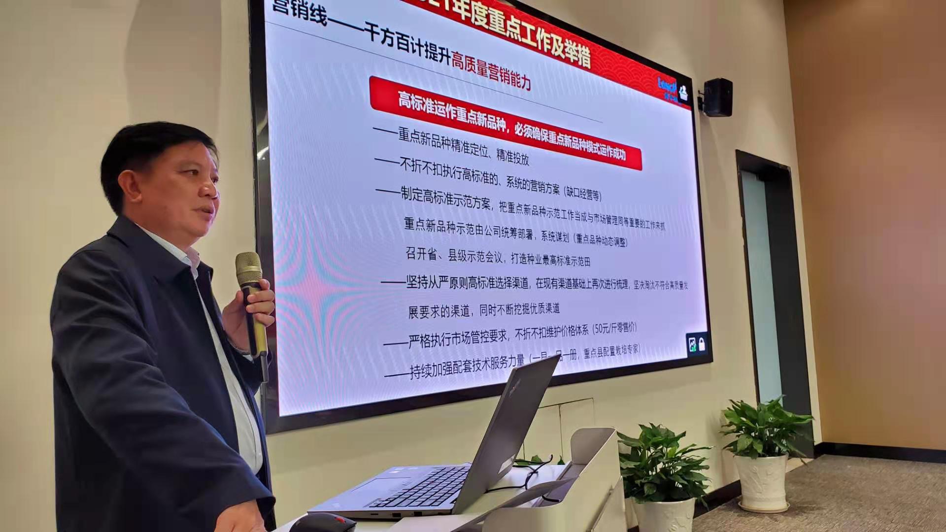 重點新品種的運作和市場管控是實現(xiàn)公司高質(zhì)量發(fā)展的基石。會上,公司銷售總監(jiān)盧成林、劉俊就重點新品種運作規(guī)則、市場管控分別做了專項報告。盧成林總監(jiān)在報告中