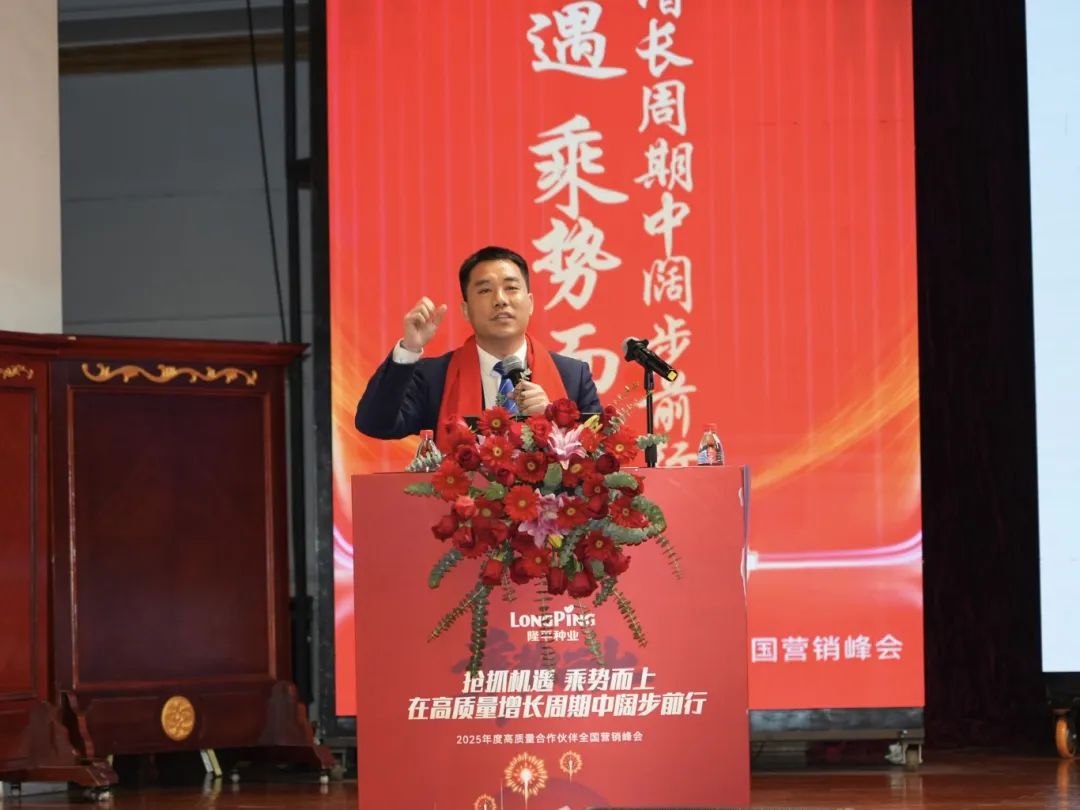 會議最后,隆平種業總經理盧成林作《搶抓機遇 乘勢而上 在高質量增長周期中闊步前行》主題報告。盧總表示,今天會議的各項分享充分彰顯了隆平種業擁有一支強大的代理商隊伍和員工隊伍,當前公司品種資源達到歷史最強,颶兩優系列高質量運作模式得到市場高度認可。同時,盧總指出,過去一年公司各項指標實現了高質量增長,颶兩優系列運作模式取得巨大成功,種糧一體化運作、大單品核心市場基本盤穩定、早熟中稻市場布局等方面都取得了優異成績。盧總強調,“中國種業的領跑者 農業服務的旗幟”是公司的愿景和定位,隆平種業有責任、有義務、有能力、有實力引領行業發展,公司將持續構建體系化競爭優勢,與全體合作伙伴一起打破行業內卷。就2025年度工作,明確了舉全公司之力快速將颶兩優系列打造成高質量大品系、深入推進種糧一體化、加大早熟市場、高端優質稻等細分市場的快速突破等工作目標。