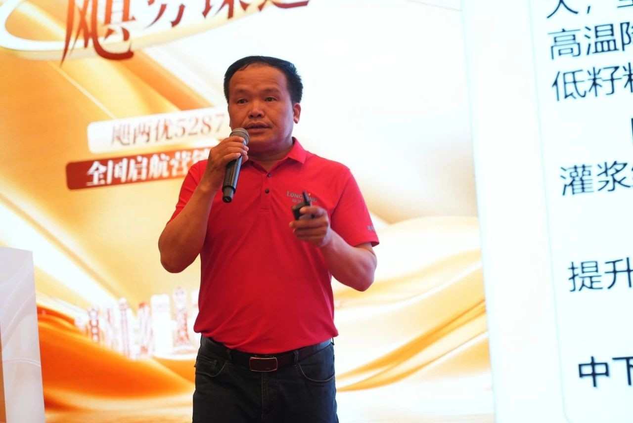 會(huì)議伊始,符辰建院長(zhǎng)以《颶兩優(yōu)5287選育進(jìn)展及后續(xù)苗頭組合介紹》為題,系統(tǒng)介紹了颶兩優(yōu)5287品種來(lái)源、特性?xún)?yōu)勢(shì)及高產(chǎn)栽培技術(shù),充分肯定颶兩優(yōu)5287的市場(chǎng)價(jià)值,同時(shí)為種植戶(hù)增產(chǎn)增收提供了科學(xué)方案,進(jìn)一步堅(jiān)定了客戶(hù)信心。