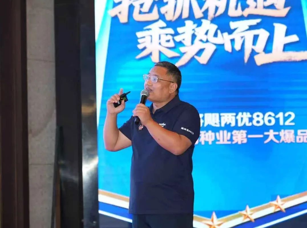 營銷總監張一明作《守正出奇,十倍投入,共創共享颶兩優8612黃金十年》主題報告。張總在報告中指出:過去的一年,颶兩優8612在全體合作伙伴的共同努力下取得了優異成績,聚焦服務、不定不供、不上柜臺運作模式深入人心,得到合作伙伴和市場的高度認可。2025年公司將錨定目標,在示范與服務、新媒體宣傳、渠道賦能等方面持續發力,與全體合作伙伴共贏種業未來。