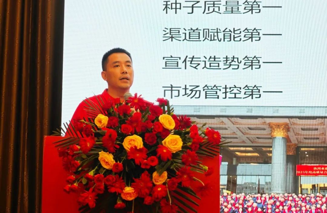 營銷總監張一明在《共創颶系大時代 繪就種業新藍圖》主題報告中,重點解讀了“颶兩優系列”品種市場管控的重要性,強調公司將堅定執行系統性營銷模式,強化市場協同與管控力度,保障市場有序發展。
